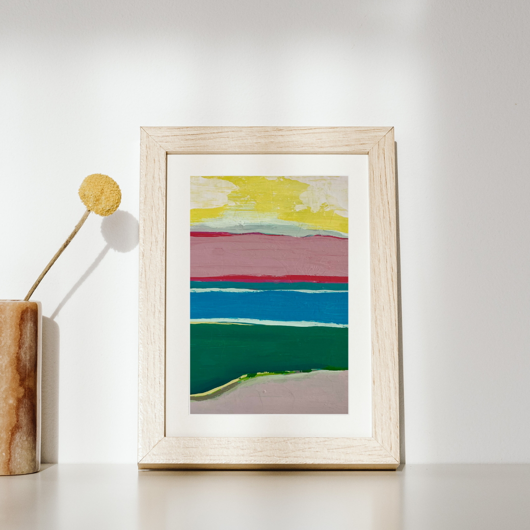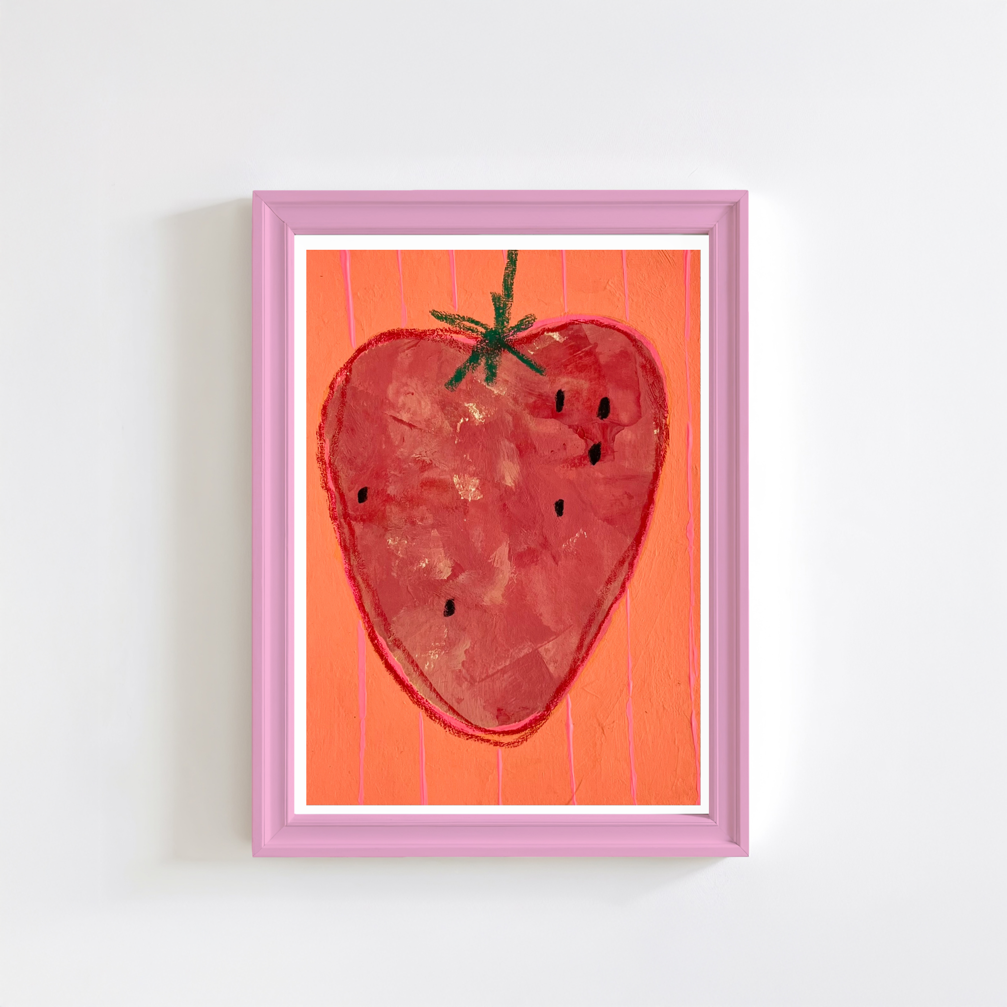 Instead you will discover—beachscapes, bold color blocks and familiar cheeky strawberries.